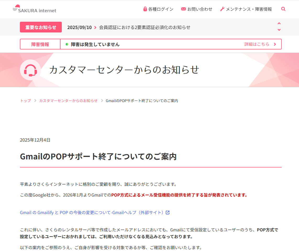Gmail、POPのサポートを2026年1月に終了へ。海外のGmailユーザーへ順次案内中